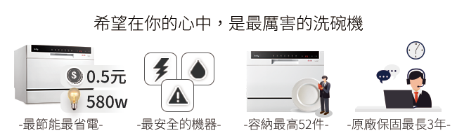 .智慧型洗碗機,最節能最省電,市面最低消耗功率580W,電費最省只要0.5元!