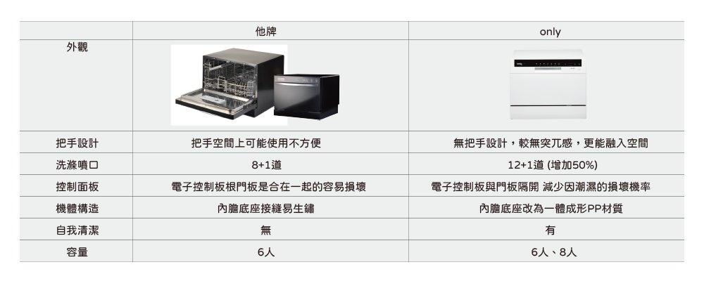only的品牌理念,是長期致力於設計高效節能、便利省時的家電,以簡約時尚的設計,展現居家優質的生活品味。