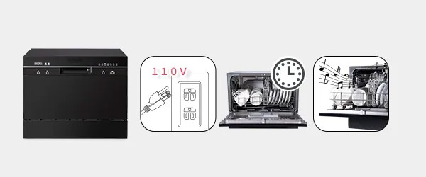 ① 接上電源前,務必確認插座是110V,電壓錯誤會導致洗碗機故障。
