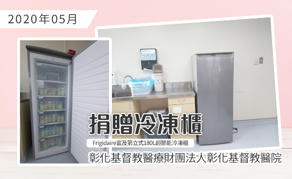 為守護孩子的健康,支持成大醫院推動母嬰親善及母乳哺餵政策,受邀捐贈冷凍櫃予偏鄉的醫院小兒科,提供冷凍保存母乳,造福更多有母乳需求的早產兒與病童。