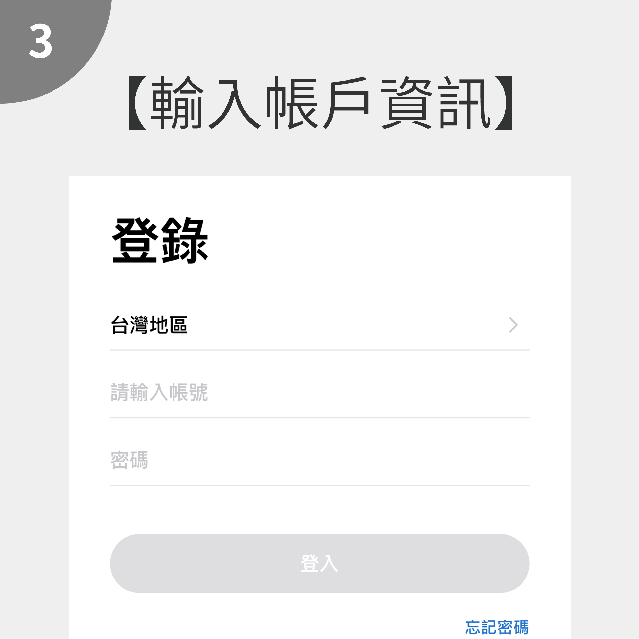 Step1-輸入當初註冊好的手機號碼或信箱及密碼☛登入
