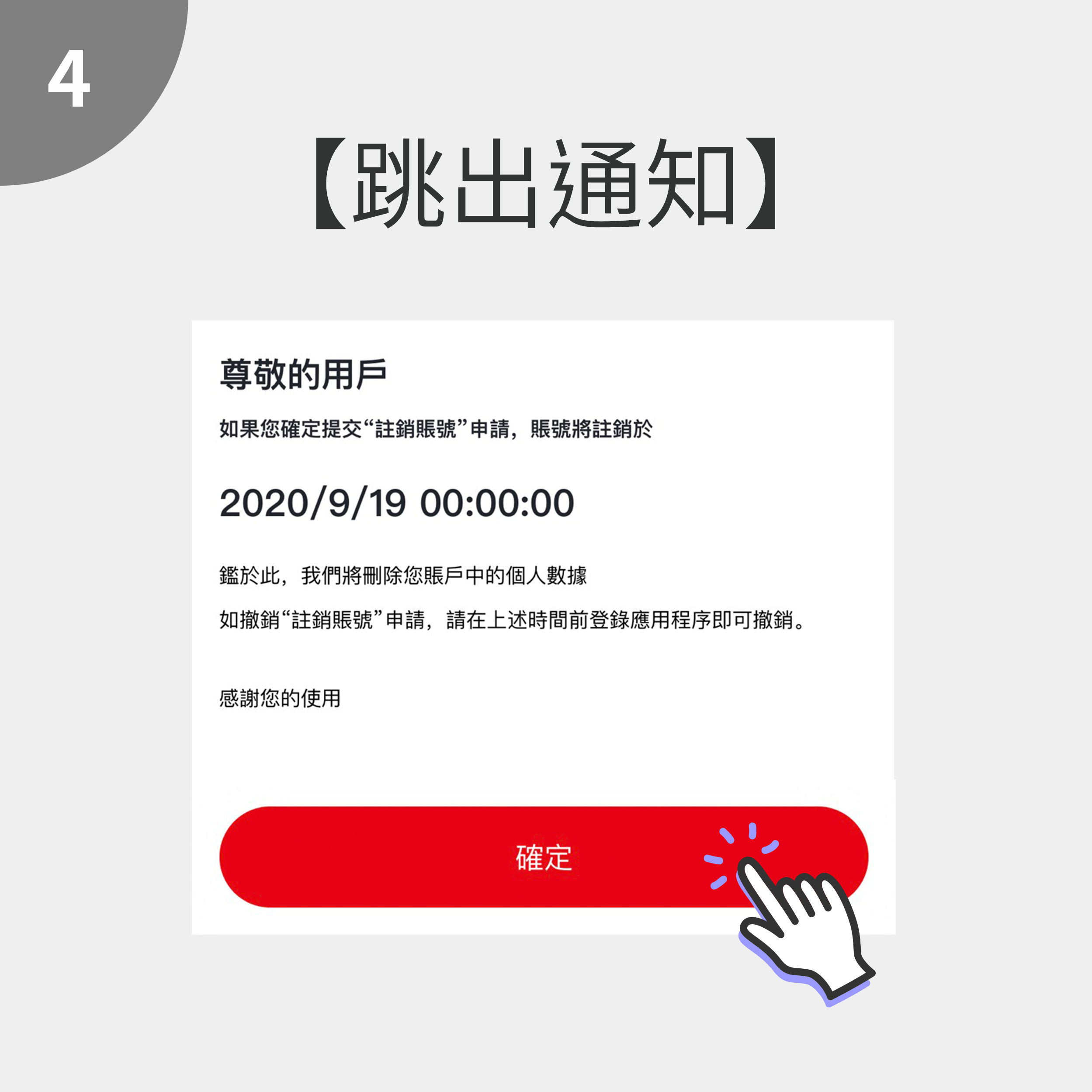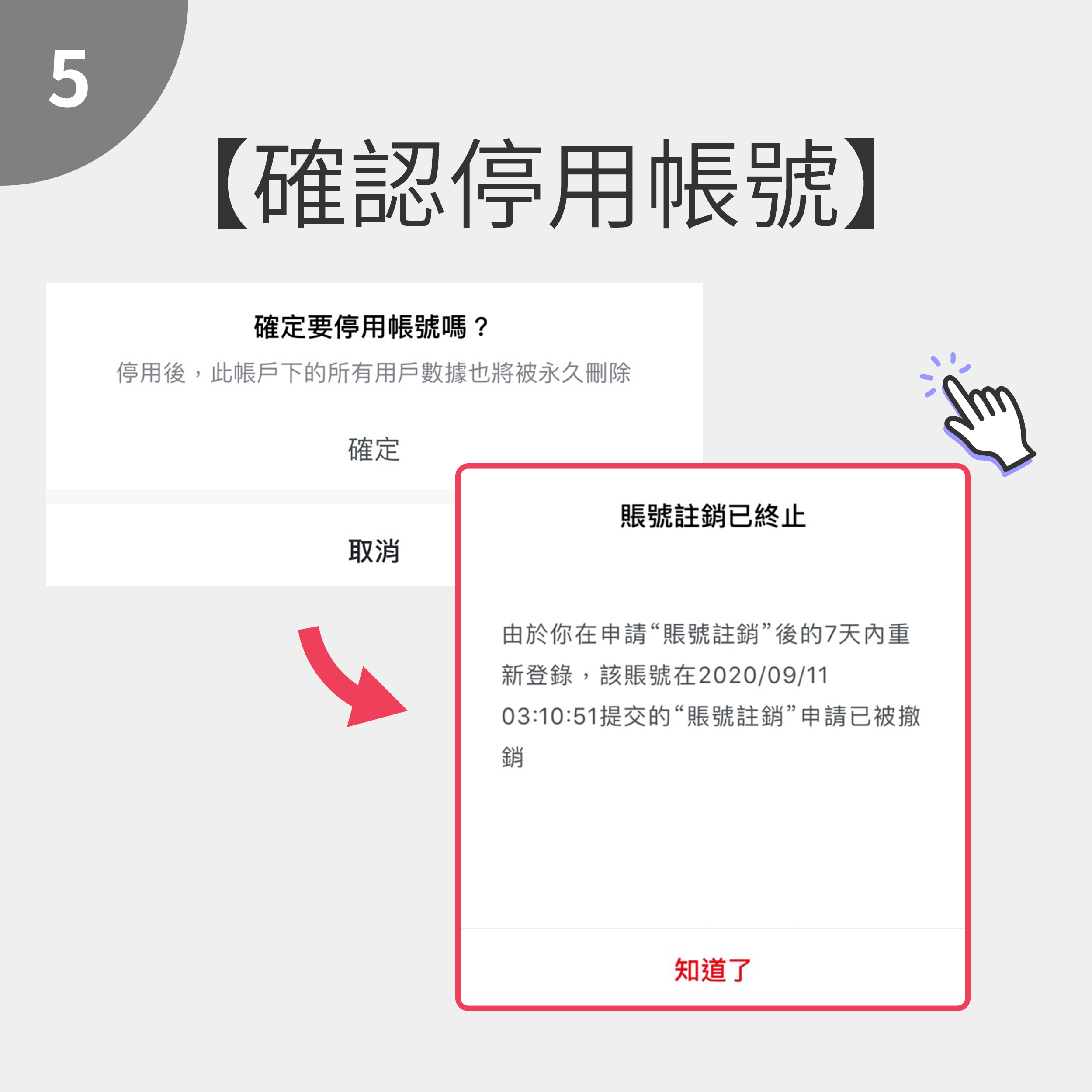 Step5-確認停用帳號*7天期間內登入會停止撤銷帳號,恢復帳號使用權