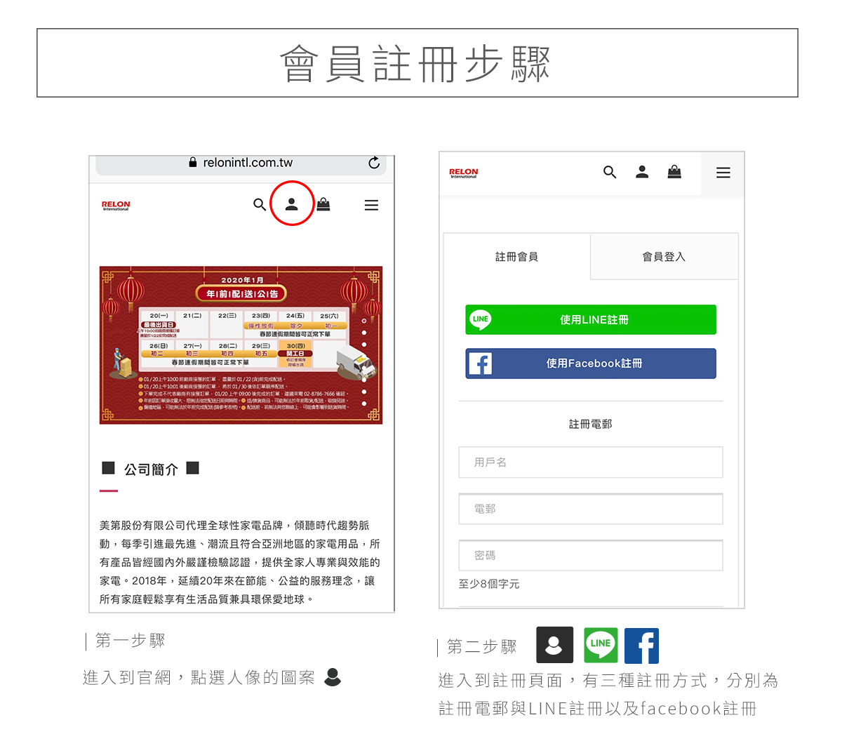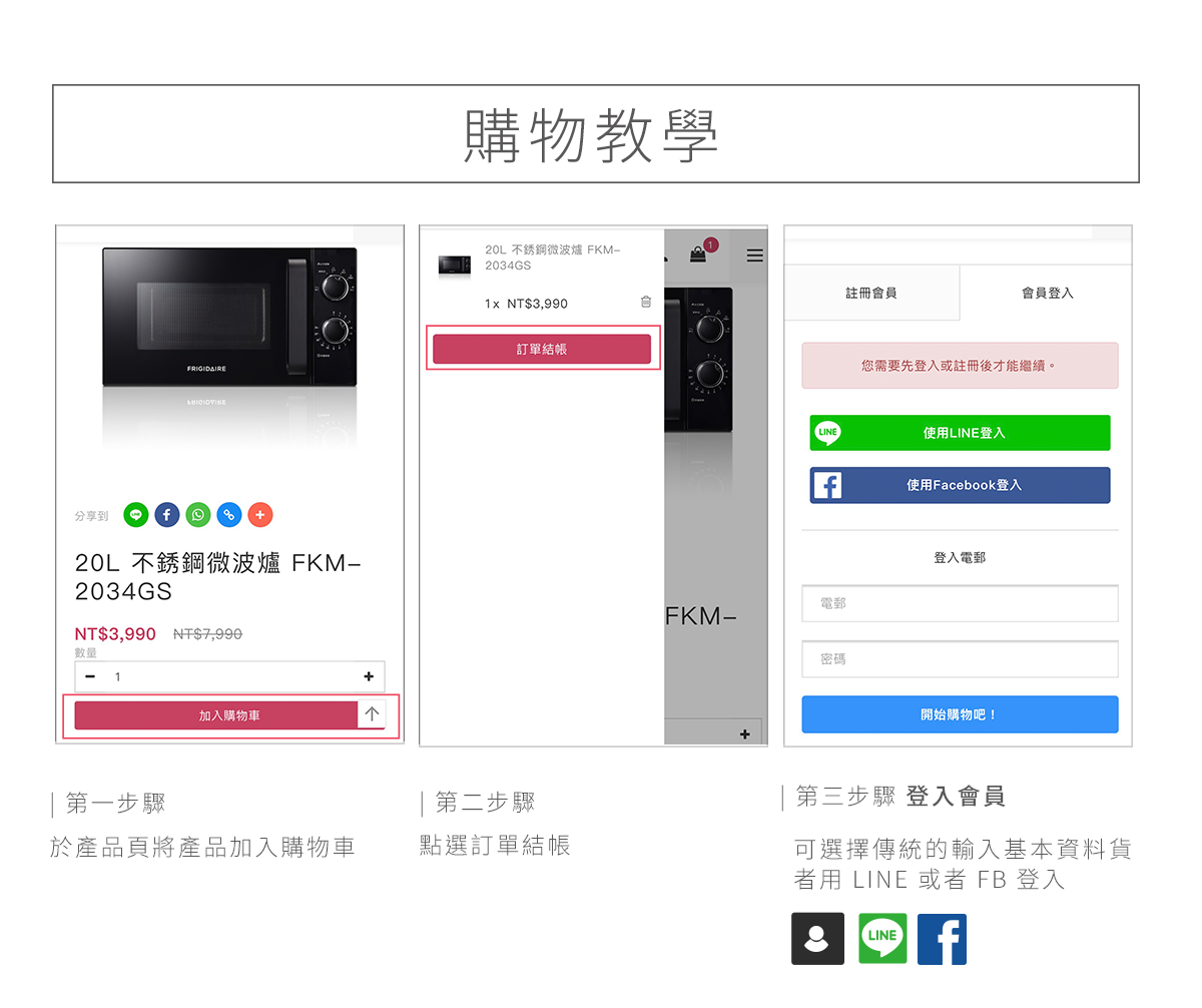 會員即可享有網站的購物樂趣,也可以使用「FB登入」或「LINE」綁定帳號,讓購物變得更簡單,也方便查詢訂單