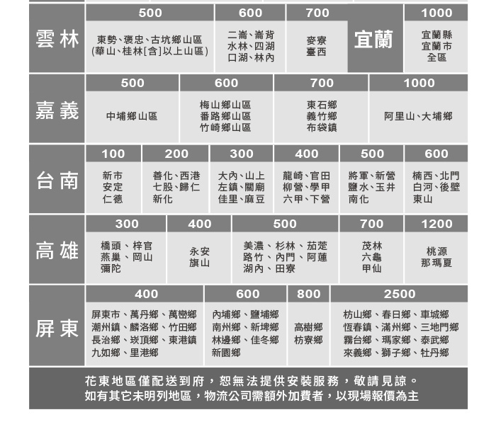 偏遠跨區費 / 樓層費 / 費用計算如下詳細請看該商品說明頁面 ⇩