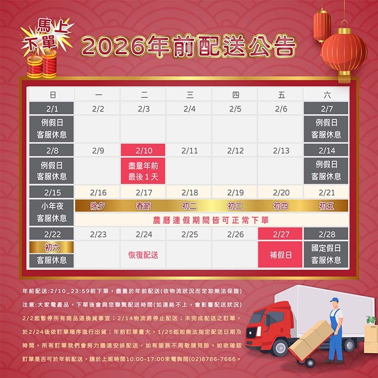 (2)不含安裝商品,為了保障雙方權益,請於拆箱時全程錄影,同時確認商品完整性,商品如有疑慮請於收貨當天起,三日內提供完整錄影檔,如無開箱影片,恕不受理商品退換貨。