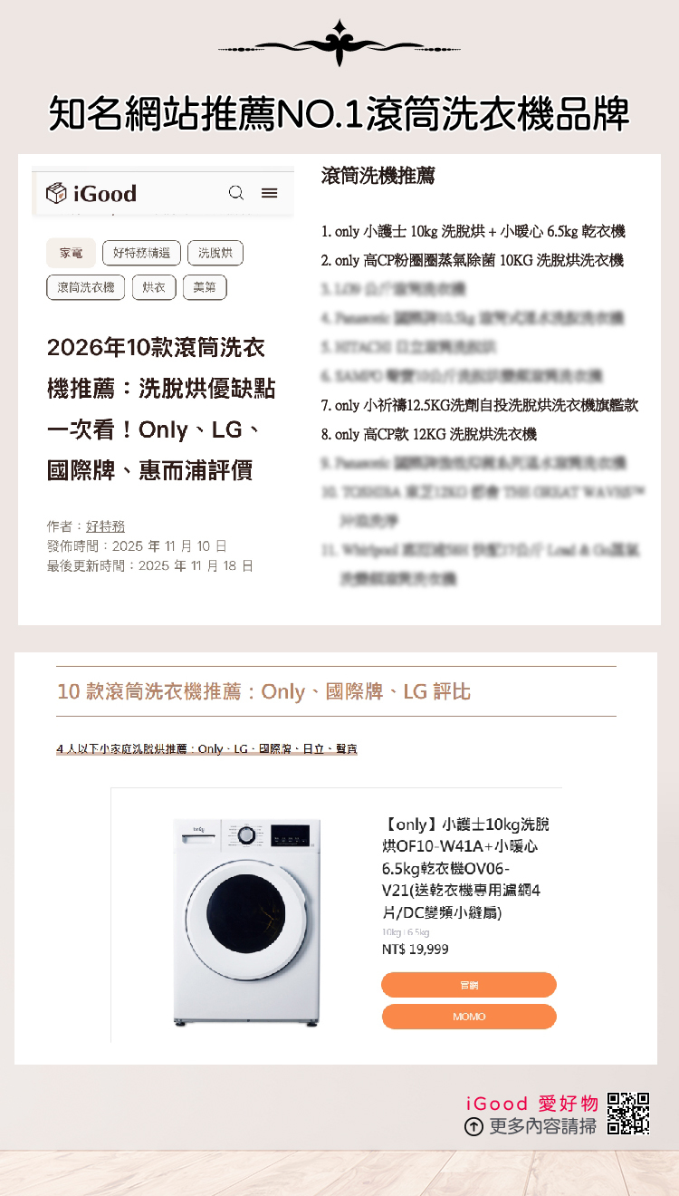【11/27-1/28 1212買好送】only蒸氣除菌10KG洗脫烘洗衣機OF10-W01/OF10-W07(省水10公斤變頻滾筒)