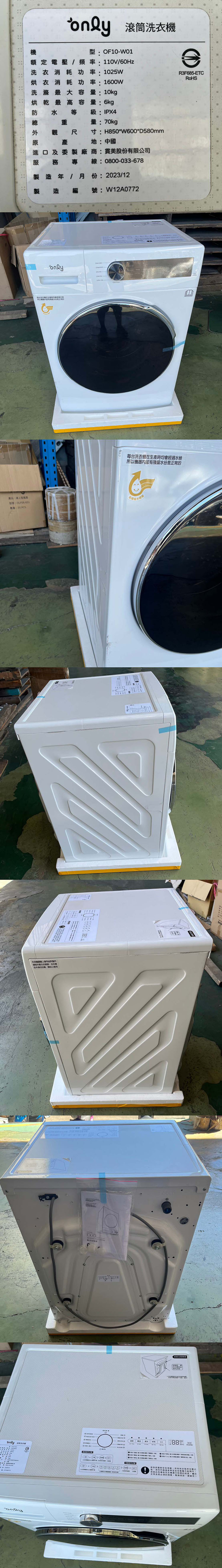 【凹傷品特賣會】only蒸氣除菌10KG洗脫烘洗衣機OF10-W01 (序號: W12A0772)