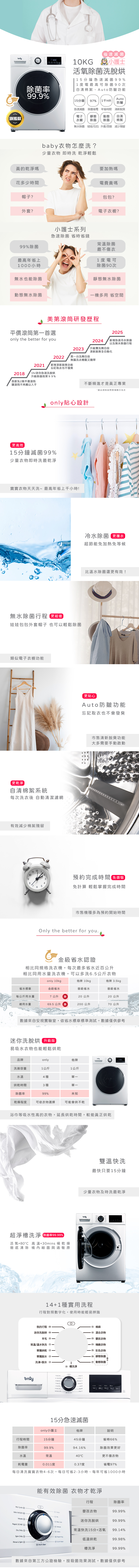 【10/24-11/26 雙11助興】贈DC變頻小縫扇~only小護士10kg急速滅菌洗脫烘OF10-W32A(金級省水10公斤變頻蒸氣活氧滾筒洗衣機/電子衣櫥功能 贈品市價$1990)