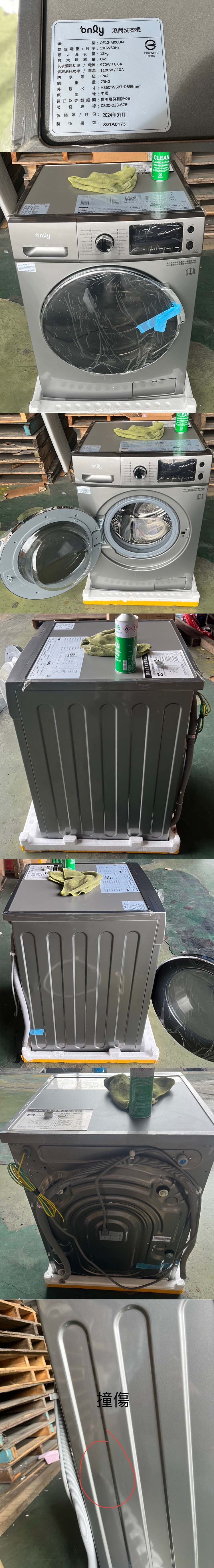 【凹傷品特賣會】only高CP款12KG洗脫烘洗衣機OF12-M06UN香檳灰(省水12公斤變頻滾筒)(序號: X01A0173)