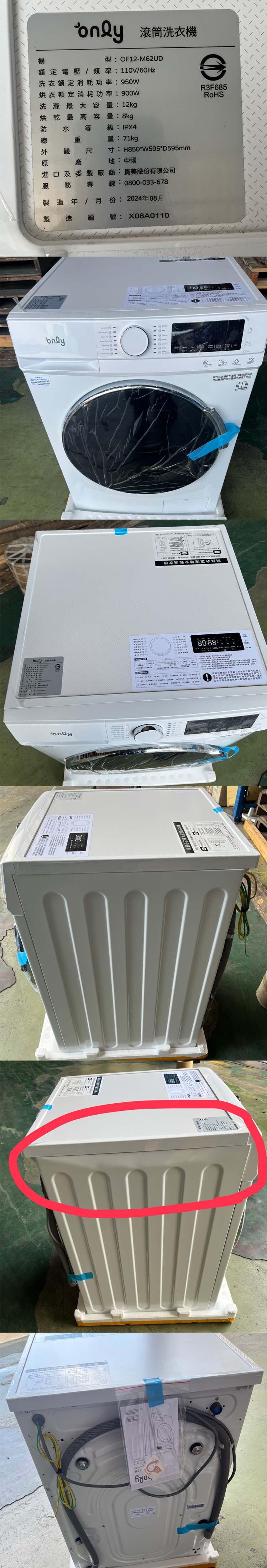 【凹傷品特賣會】only 小祈禱12KG洗劑自投洗脫烘洗衣機OF12-M62UD白(省水12公斤變頻滾筒)(序號: X08A0110)