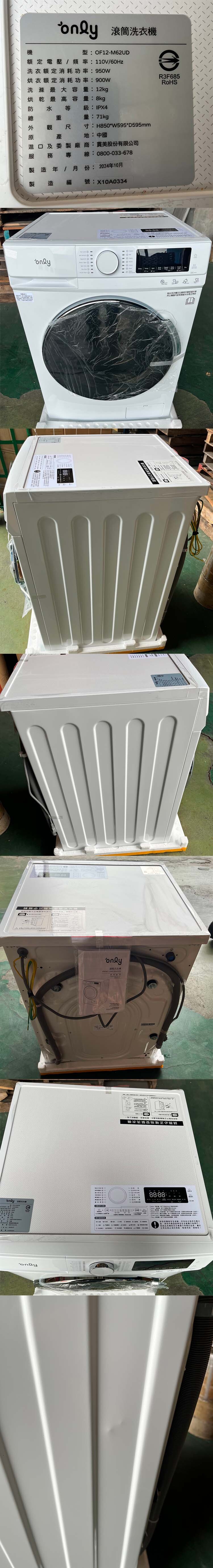 【凹傷品特賣會】only 小祈禱12KG洗劑自投洗脫烘洗衣機OF12-M62UD白(省水12公斤變頻滾筒)(序號: X10A0334)