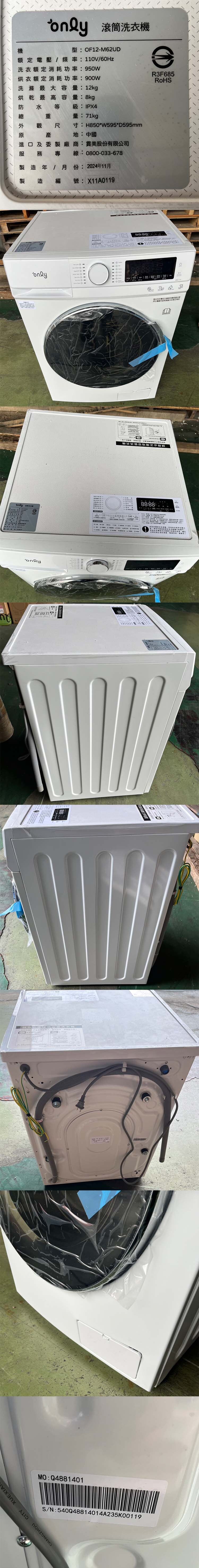 【凹傷品特賣會】only 小祈禱12KG洗劑自投洗脫烘洗衣機OF12-M62UD白(省水12公斤變頻滾筒)(序號: X11A0119)