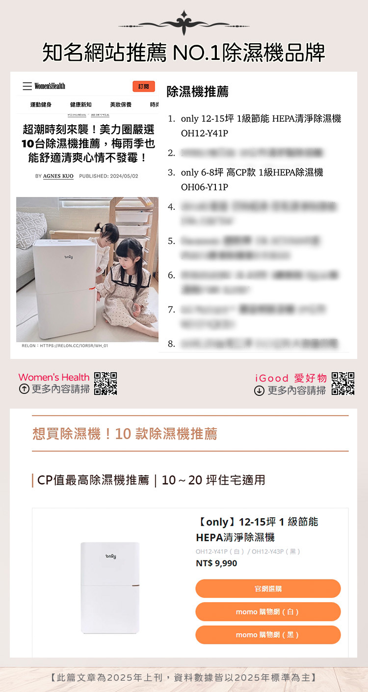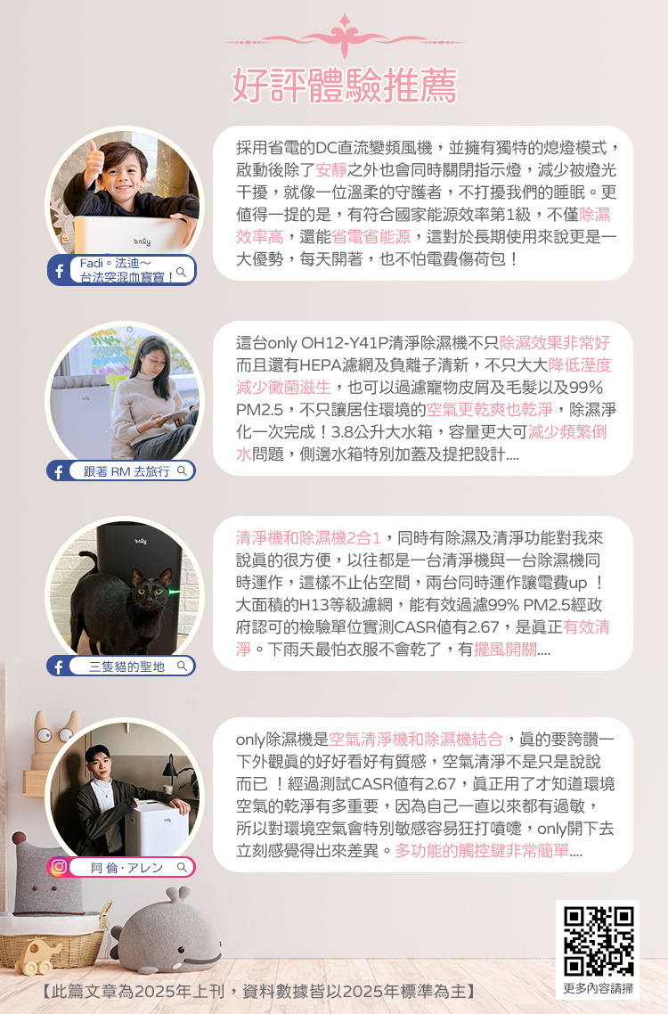 【only福利品特賣會】only 1台抵2台12-15坪HEPA空氣清淨除濕機OH12-Y41P加強乾衣(DC變頻電機/12公升)