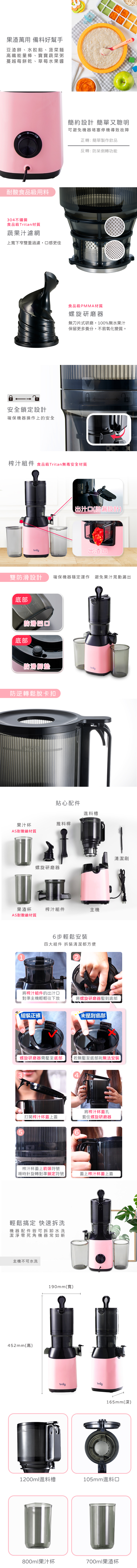 【10/24-11/26 雙11助興】only大纖100%原汁萃取果汁機OJ20-L37S氣質粉(家庭號105大口徑蔬果慢磨機)