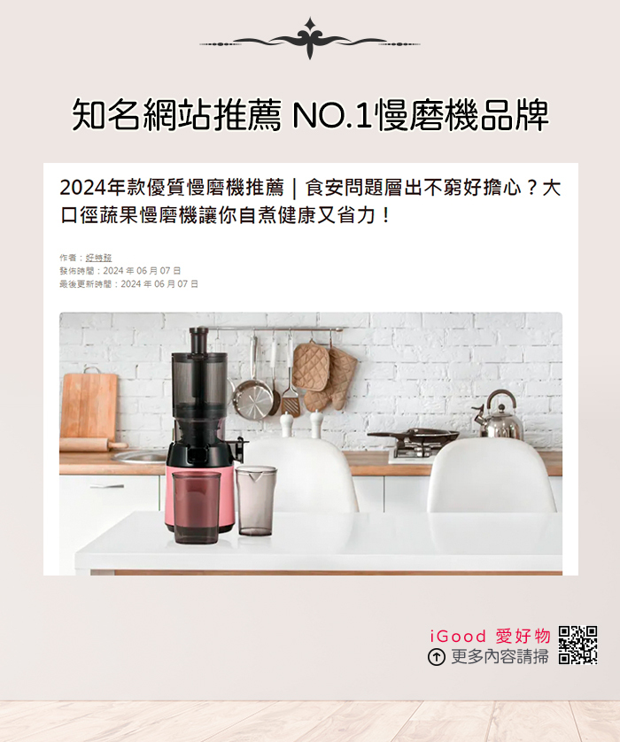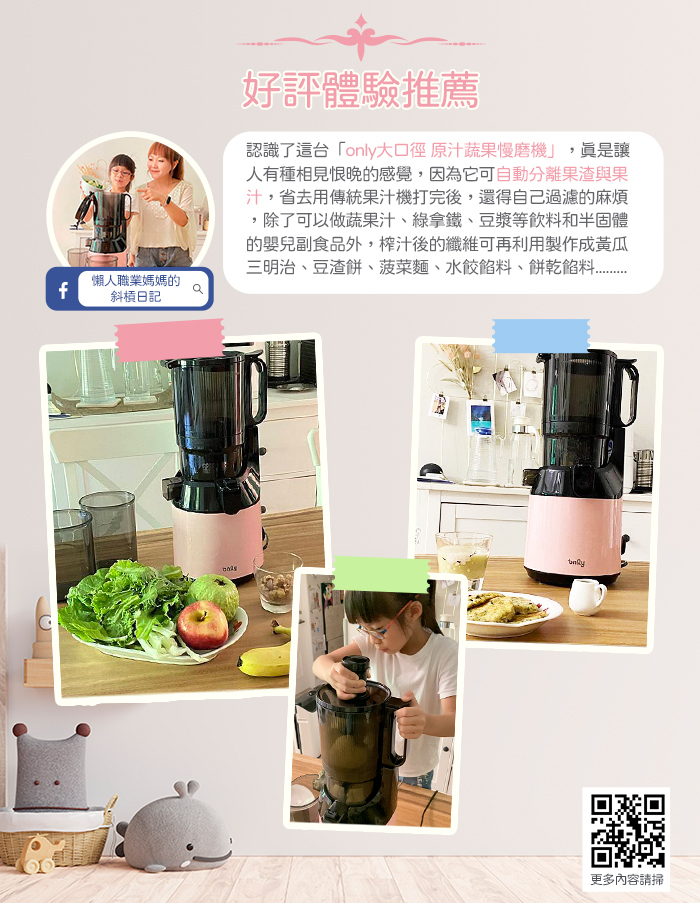 【10/24-11/26 雙11助興】only家庭號130大口徑 蔬果慢磨機OJ30-L27S氣質粉(100%原汁萃取果汁機)