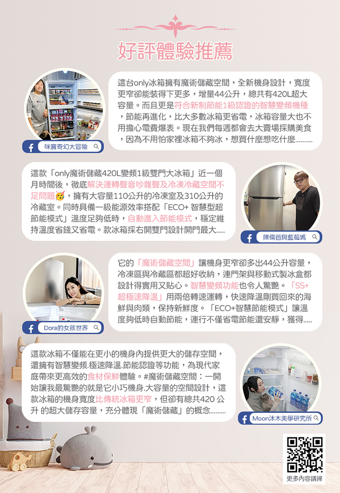 【10/24-11/26 雙11助興】贈DC變頻小縫扇~only魔術儲藏420L變頻1級雙門大冰箱OR420-RM06I福利品(節能標章420公升 贈品市價$1990)