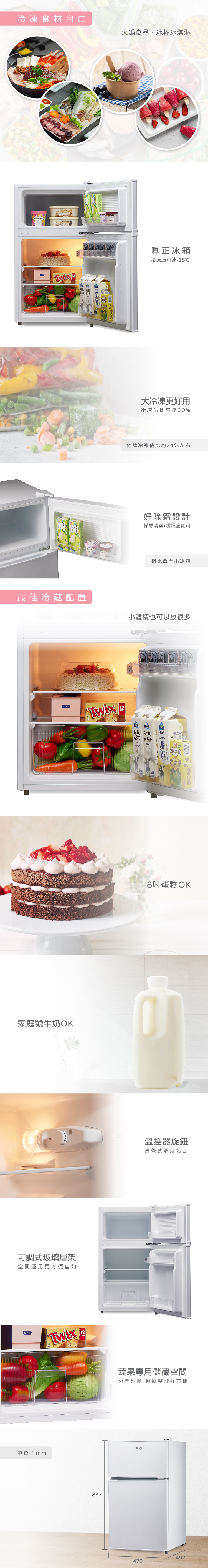 【10/24-11/26 雙11助興】贈DC變頻小縫扇~only小房東90公升1級冰箱OR90-RM02美型簡約白福利品(節能標章90L雙門 比飯店用變頻小單門還省電)贈品市價$1990