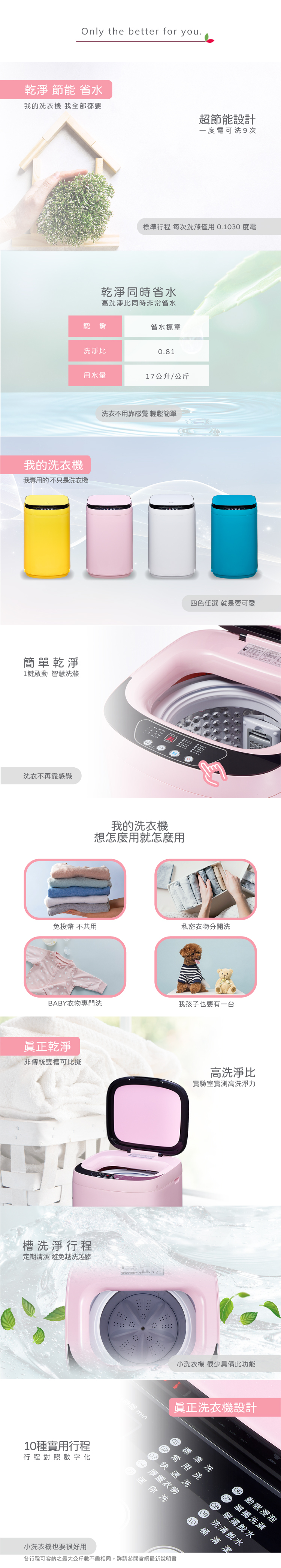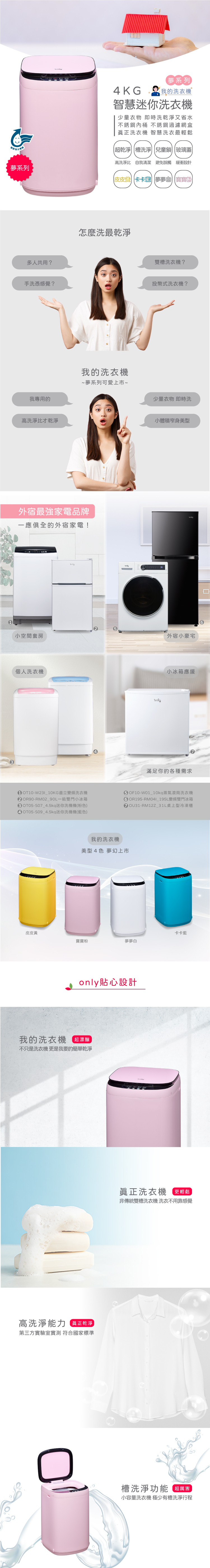 【10/24-11/26 雙11助興】only我的洗衣機 夢系列4KG迷你洗衣機OT04-H07寶寶粉(4公斤Mini省水直立式 比小雙槽更好用)