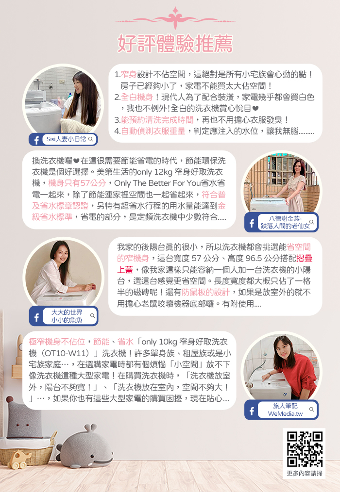 【only福利品特賣會】only雙節能10KG窄身好取洗衣機OT10-W11耗電量和變頻相仿(省水10公斤直立式)