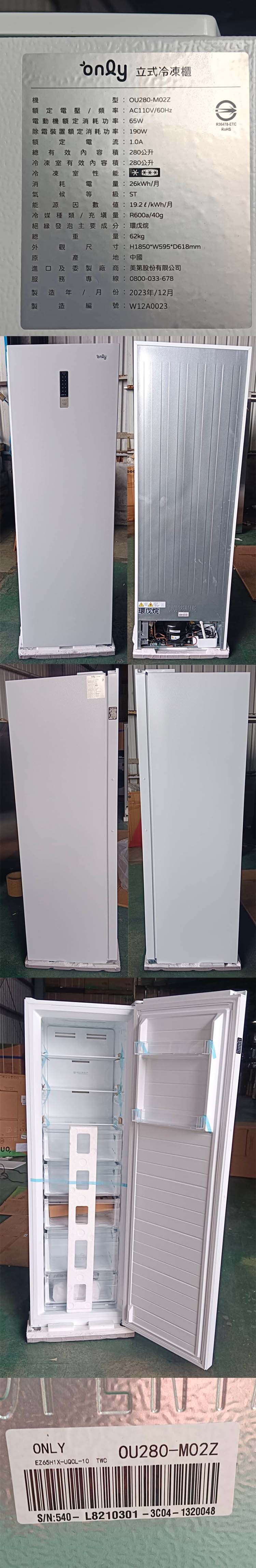 【凹傷品特賣會】only節能進化280L無霜冷凍櫃OU280-M02Z簡約白(比變頻更省電/節能標章)(序號: W12A0023)