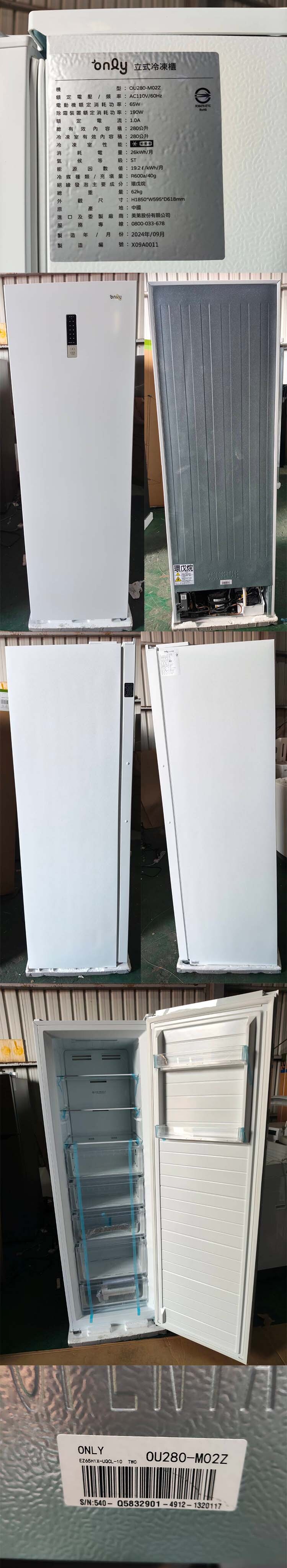 【凹傷品特賣會】only節能進化280L無霜冷凍櫃OU280-M02Z簡約白(比變頻更省電/節能標章)(序號: X09A0011)