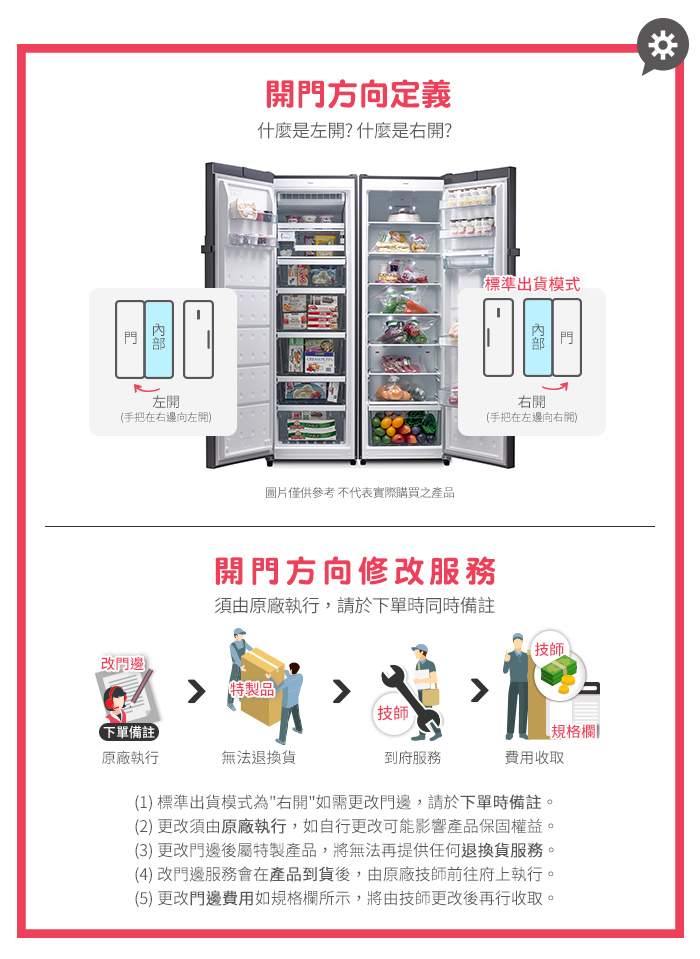 (3) 更改門邊後屬特製產品,將無法再提供任何退換貨服務。