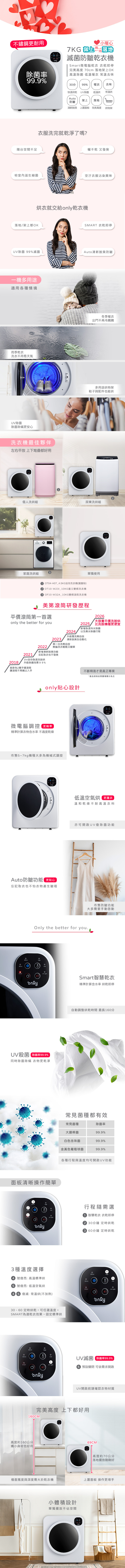 【 only 】小暖心7kg微電腦滅菌防皺乾衣機OV07-V22落地/架上兩用型(不銹鋼電子式,落地架上ok洗脫烘幫手)
