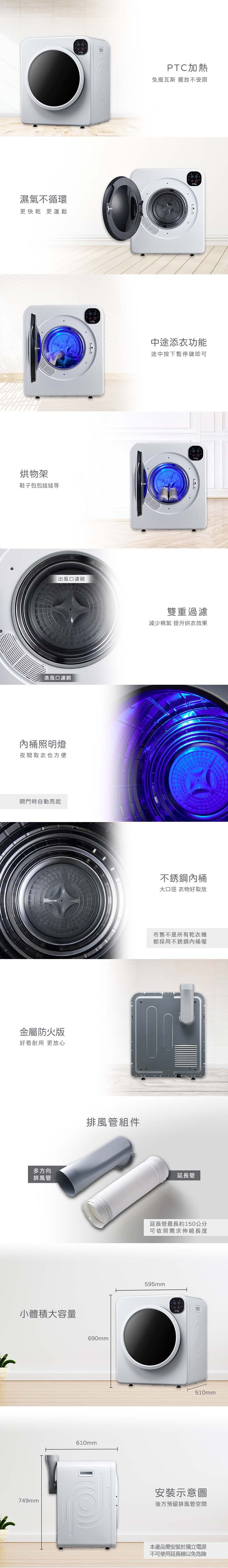 2.為達到最佳烘乾效果,衣物烘乾重量請控制在空間的8成 ,並請勿超過原廠標示的容量。