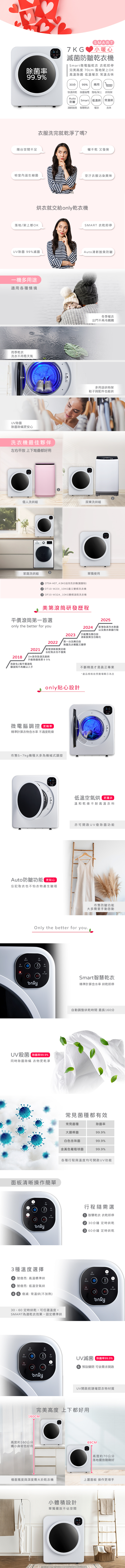 【好評延長 冬日必備 超級登錄活動】贈專用濾網4片~only小暖心7kg微電腦滅菌防皺乾衣機OV07-V22落地/架上兩用型(智慧滾筒7公斤送烘物/鞋架)